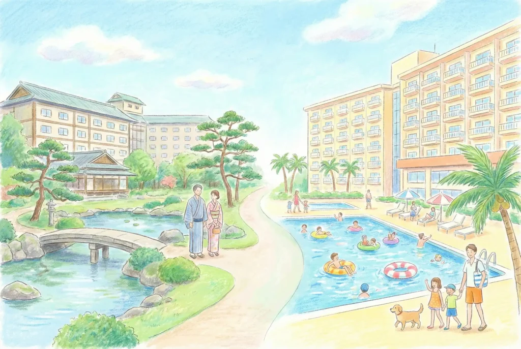 「池田温泉って、本館と新館どっちがいいの?」 公式サイトを見ても、写真や説明だけではいまいち違いが分かりづらくて迷ってしまいますよね。 同じ源泉を使った“美肌の... 宿比較